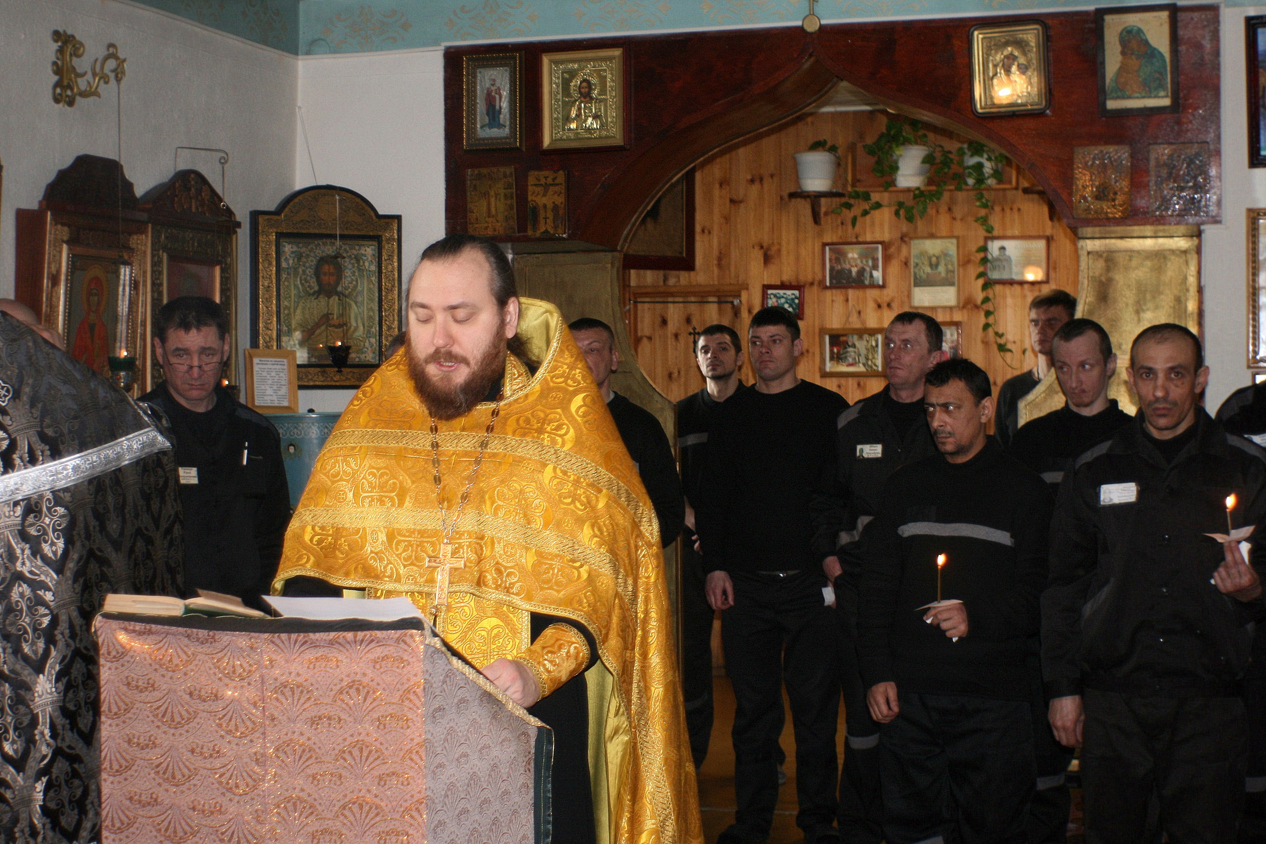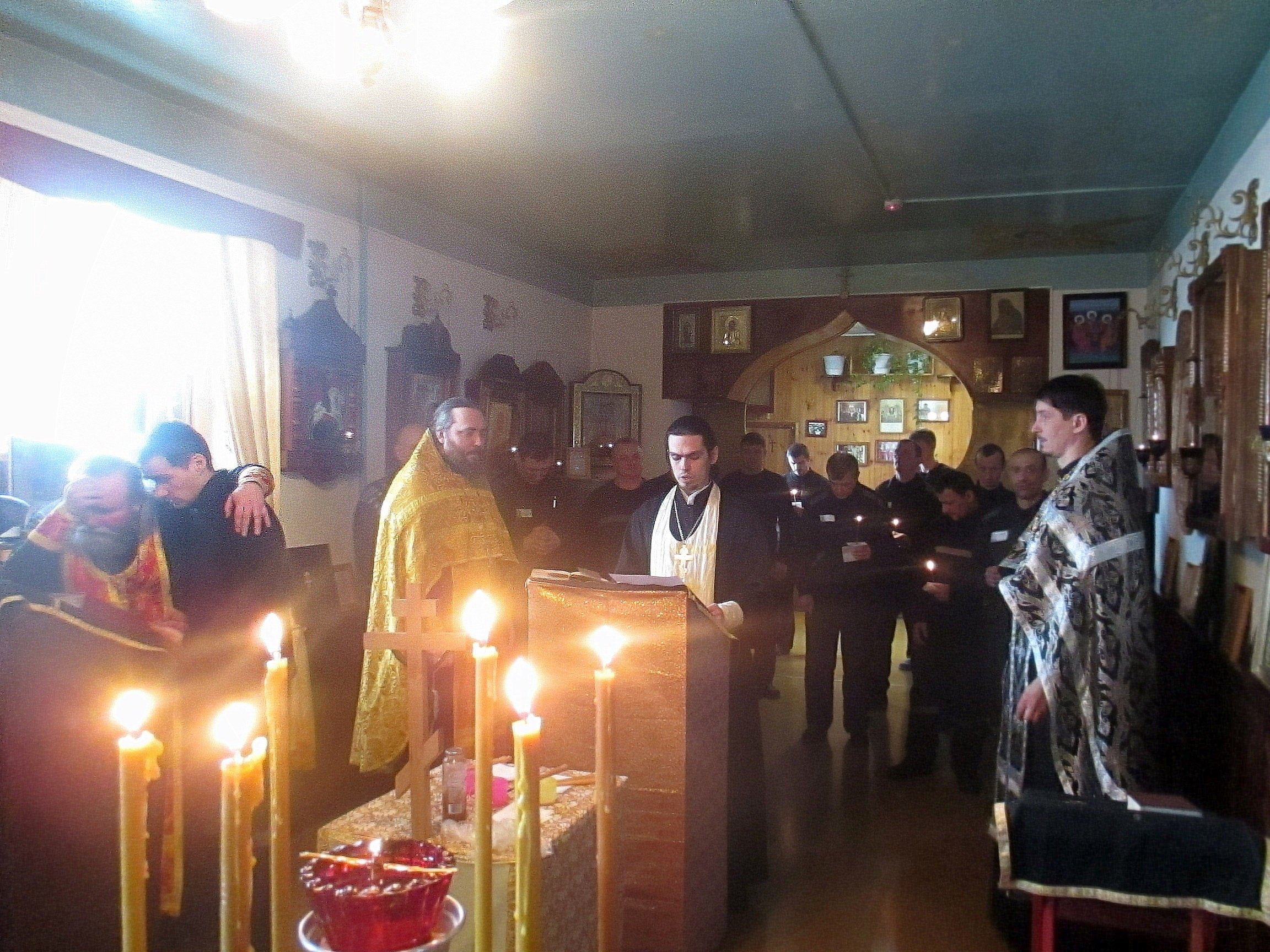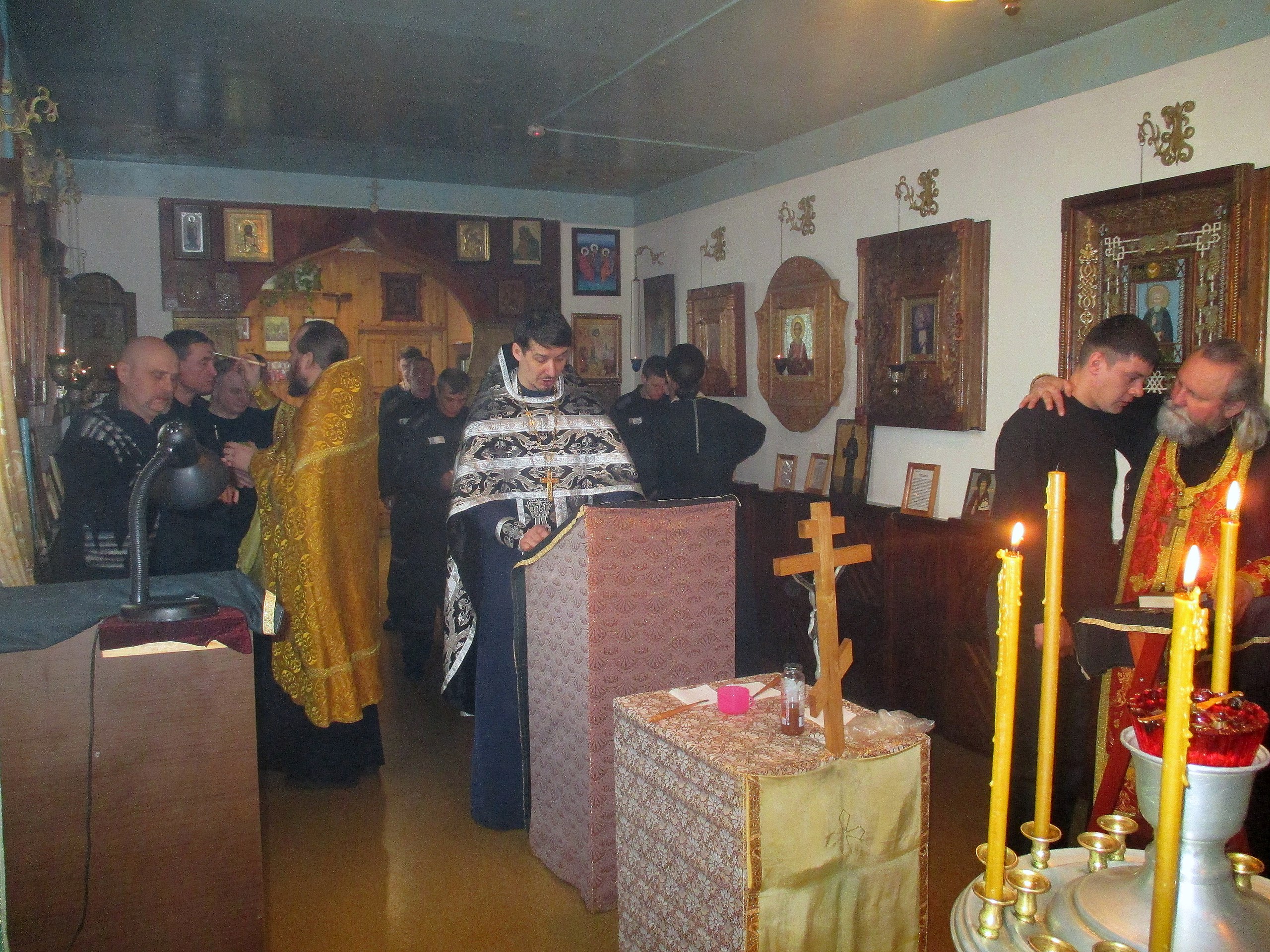 Вчера, 26 марта 2018 года, в храме во имя Святителя Тихона Задонского в исправительной колонии № 6 в г. Санкт-Петербурге, настоятелем храма Святого Равноапостольного князя Владимира о. Алексеем Дудиным и священником о. Вячеславом Красноруцким было совершено Таинство Соборования.