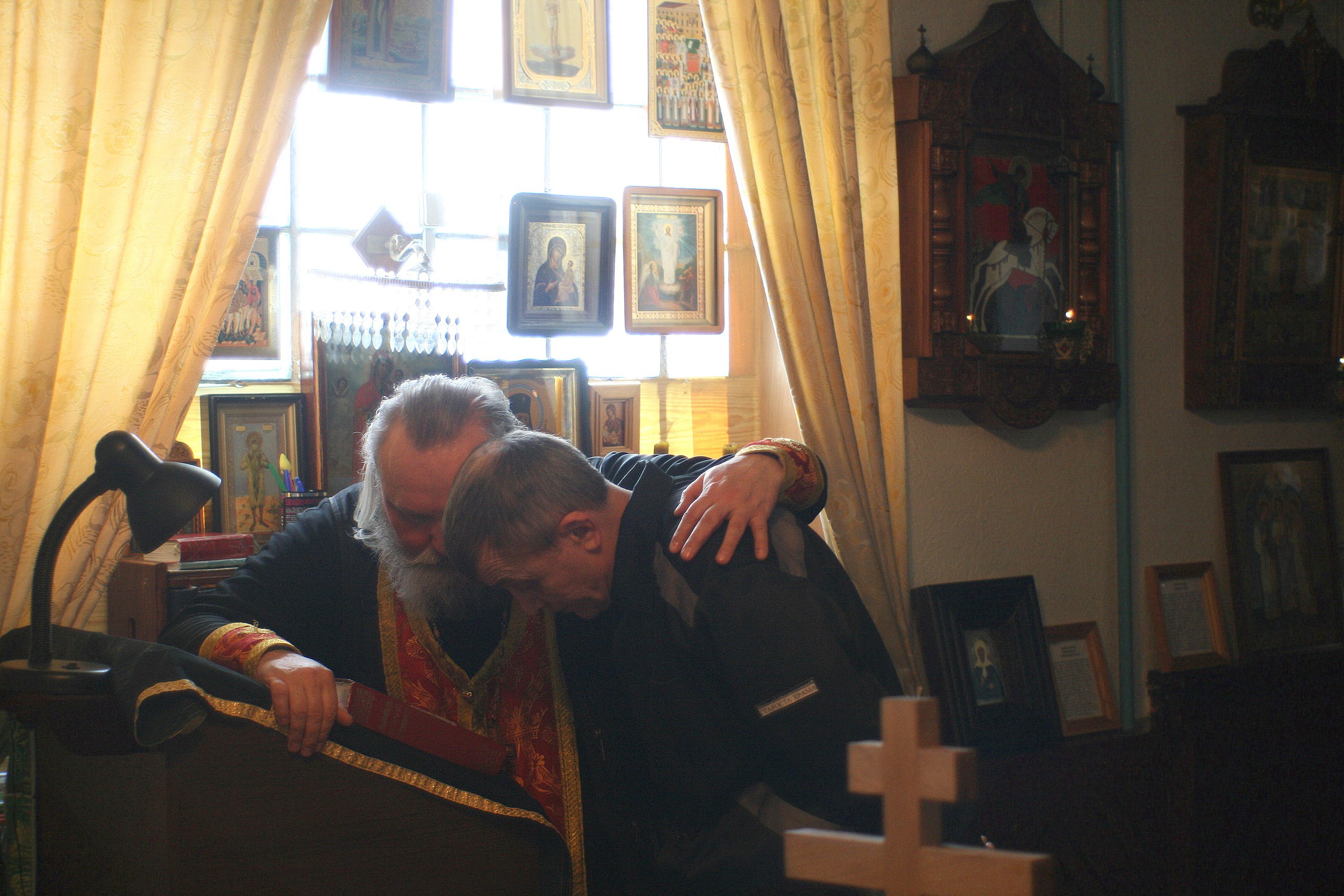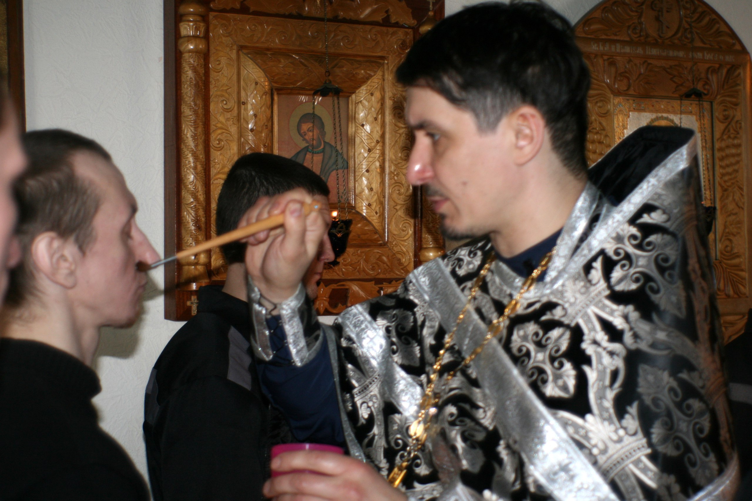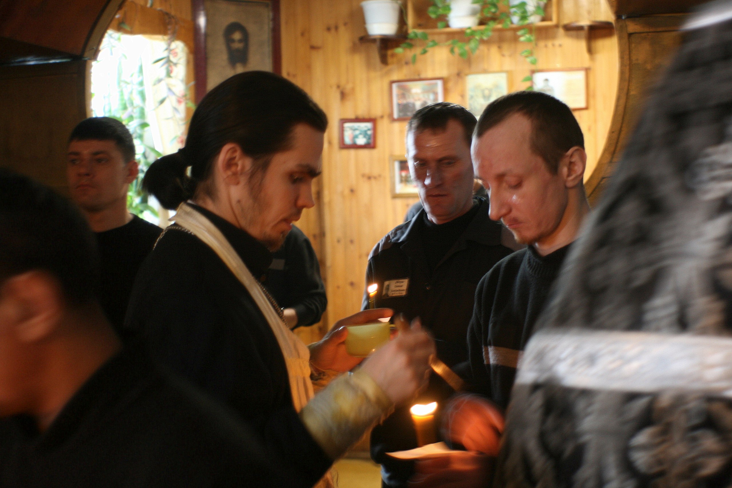 После совершения таинств члены православной общины ИК №6 организовали трапезу, в ходе которой священники отвечали на многочисленные вопросы, слушали рассказы заключенных, делились своим духовным опытом.